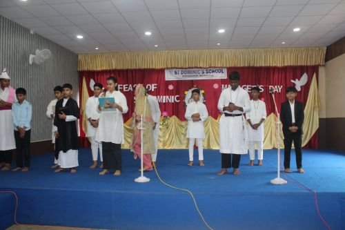 The programme commenced with a soul-stirring group song dedicated to St. Dominic, setting a devotional atmosphere. To bring the history of the institution’s patron to life, students presented a compelling theatrical skit. The performance vividly depicted the life of St. Dominic, highlighting his unwavering virtues of: