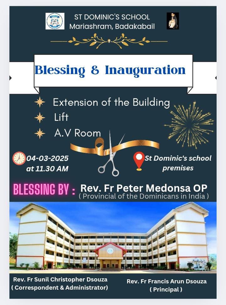 St. Dominic’s School, Mariashram, Badakabail, marked a significant milestone on March 4, 2025, with the official Blessing and Inauguration of the new Building Extension, Lift, and A.V. Room. The ceremony, held at 11:30 AM on the school premises, celebrated the school’s commitment to modernizing its infrastructure and enhancing the learning environment.