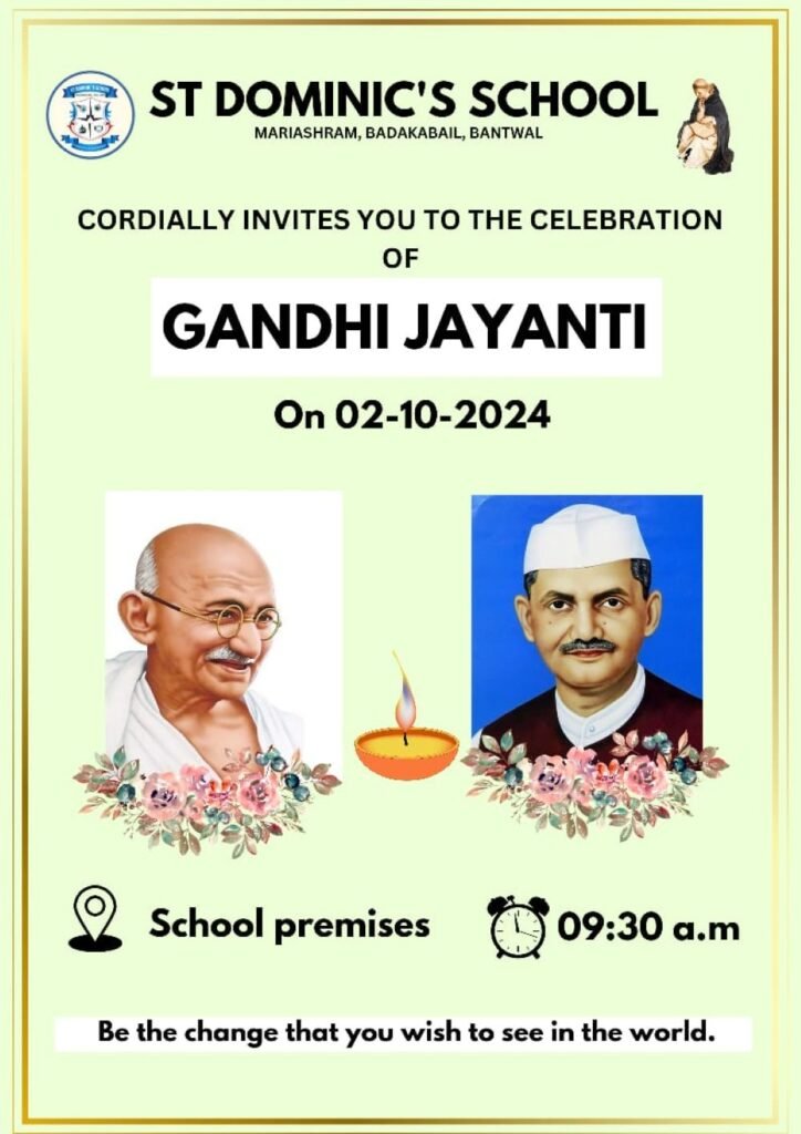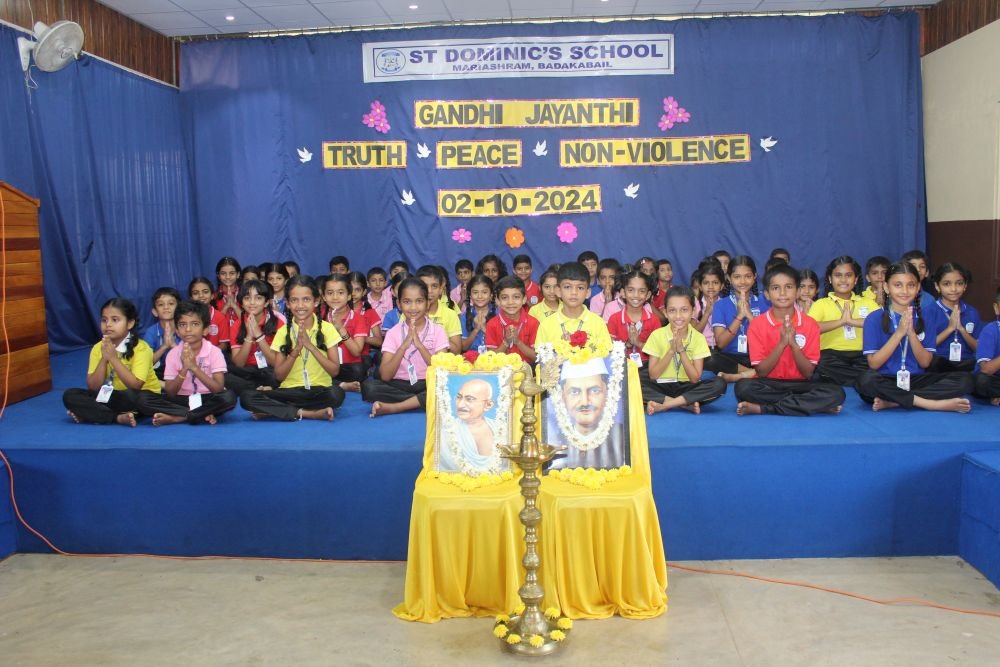 St. Dominic’s School recently marked the auspicious occasion of Gandhi Jayanti with a solemn and inspiring program held on October 2, 2024. The event was organized to honor the birth anniversary of the Father of the Nation, Mahatma Gandhi, and to reflect on his timeless principles of truth and non-violence.